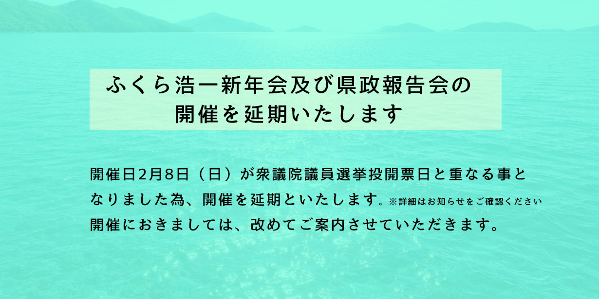 「ふくら浩一新年会及び県政報告会」の開催延期について